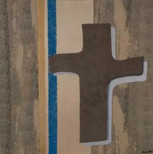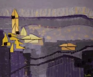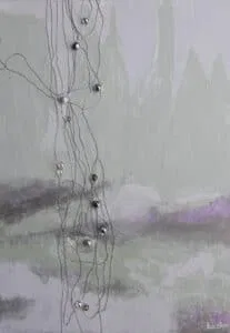 met acrylverf, waarbij ik ook stoffen en andere materialen gebruik.